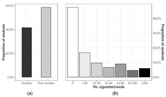 (a) Percent of smokers and non-smokers students and (b) number of cigarettes/day.