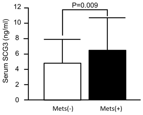 Comparison of serum secretogranin III levels between subjects without and those with metabolic syndrome (MetS).