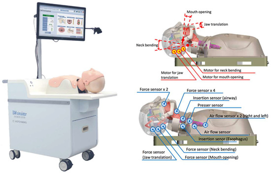 The “Difficult Airway Management Simulator Evaluation System”, including engines and sensors (Kyoto Kagaku Co., Ltd.).