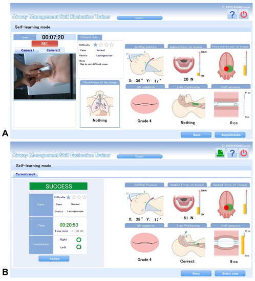 (A) Live feedback and (B) feedback summary shown by the “Difficult Airway Management Simulator Evaluation System”.