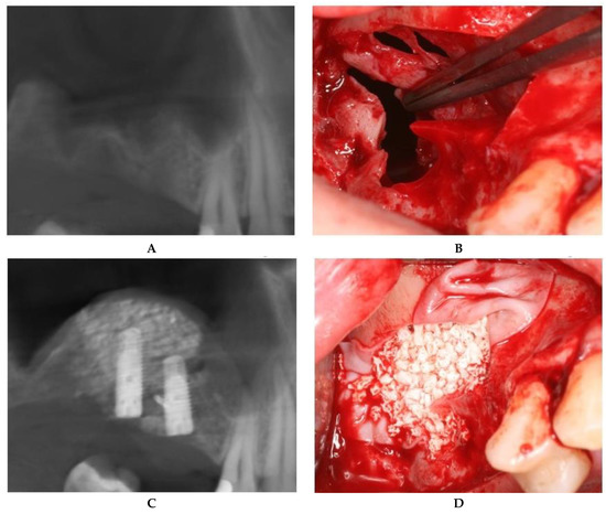 Postoperative medications included nonsteroidal anti-inflammatory drugs (dexketoprofen 25 mg) if needed, antibiotics (amoxicillin/clavulanic acid) 1 g every 12 h for 7 days and steroidal anti-inflammatory drugs (dexamethasone phosphate 8 mg) for 3 days, starting 1 day prior to surgery. Among the postoperative indications were not to sneeze with the mouth closed, not to blow the nose, and (for patients with additional bone block and bone graft material on the edentulous ridge) not to rinse with chlorhexidine. The first postoperative check was performed 48 h after the intervention, then at 7 days for suture removal and then every 25 days until the next surgical phase.