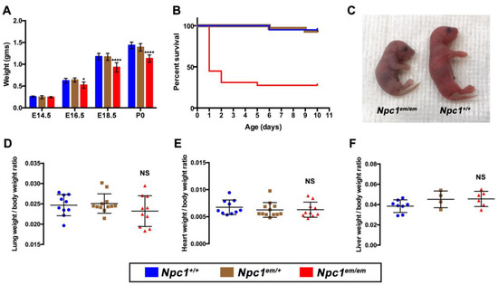 3.3. Neonatal Lethality Occurs in Npc1em/em Mutants