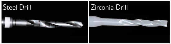 Steel cylindrical 2 mm diameter drill and zirconia cylindrical 2 mm diameter drill used for the investigation.