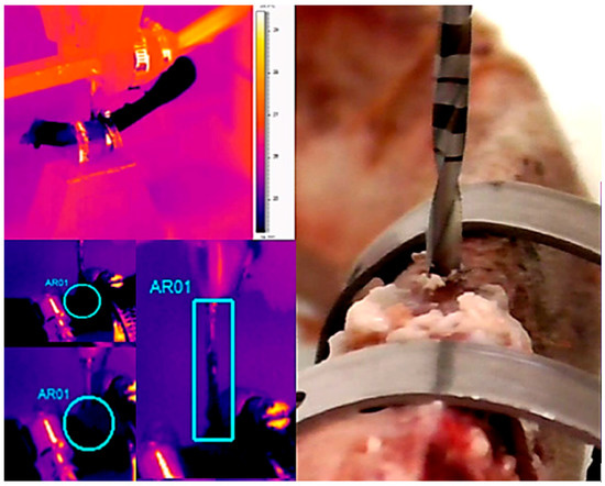 - Augustin, G.; Davila, S.; Udiljak, T.; Vedrina, D.S.; Bagatin, D. Determination of spatial distribution of increase in bone temperature during drilling by infrared thermography: Preliminary report. Arch. Orthop. Trauma Surg. 2009, 129, 703–709. [Google Scholar] [CrossRef] [PubMed]