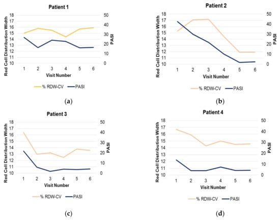 - Dogan, S.; Atakan, N. Red Blood Cell Distribution Width is a Reliable Marker of Inflammation in Plaque Psoriasis. Acta Dermatovenerol. Croat. 2015, 25, 26–31. [Google Scholar]