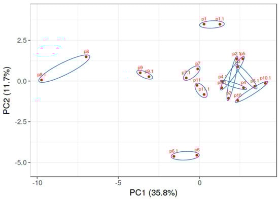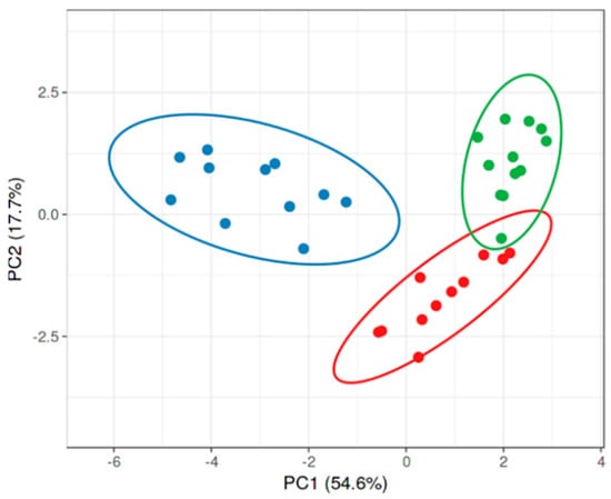 Although the analysis of PAH samples versus DM or heart cohorts was assessed in two different runs, we found a very robust reproducibility of the metabolic data (Figure 2). Therefore, we were able to combine two experiments using the PAH group as a reference point and compare all three patients’ cohorts together (Figure 3). Moreover, we undertook metabolite optimization and identified the minimal number of metabolites sufficient for a significant separation of the PAH group from DM and heart. In Figure 3, only eleven metabolites were used to distinguish the PAH samples from the other patients. This analysis indicates that PAH patients metabolically are well resolved from both diseases. Thus, this panel of eleven metabolites (oxalic acid, pseudouridine, gluconic acid, fumaric acid, uridine diphosphate (UDP)-glucuronic acid, aconitic acid, erythritol, 2-deoxytetronic acid, glutamic acid, inorganic phosphate, and 2-hydroxyglutaric acid) could be used for the pre-screening of patients to identify PAH at the early asymptomatic stage, or could help to minimize the time for PAH diagnosis after the onset of the initial symptoms, reported to be currently 47.1 ± 34.2 months [].