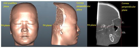 Preoperative (2 weeks before surgery) and postoperative (6 months after surgery) 3D maxillofacial images were acquired using an i-CATTM cone-beam computed tomography (CBCT) scanner (Imaging Sciences International, Hatfield, PA, USA). The extended field of view (FOV) was 22 (height) × 16 (depth) cm, the scanning time was 40 s, and the voxel size was 0.4 × 0.4 × 0.4 mm. The patient’s head was positioned with the Frankfort horizontal (FH) plane parallel to the ground. Throughout the scan, the patients were instructed not to swallow, keep their mouth closed, and maintain a centric occlusion bite. The 6-month postoperative time was adopted for this study to avoid the influence of the swelling process on the soft tissue analysis, as previously demonstrated [35,36].