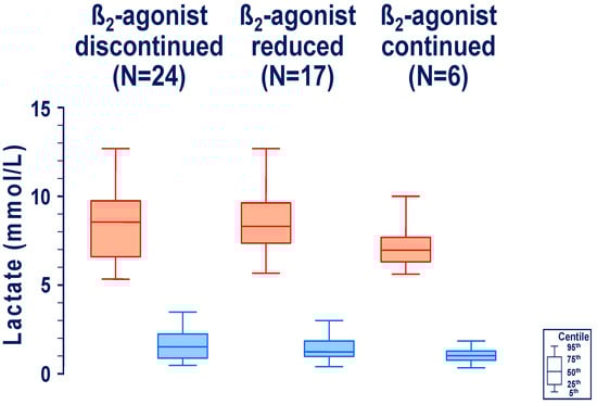 - Braden, G.L.; Johnston, S.S.; Germain, M.J.; Fitzgibbons, J.P.; Dawson, J.A. Lactic acidosis associated with the therapy of acute bronchospasm. N. Engl. J. Med. 1985, 313, 890–891. [Google Scholar] [CrossRef] [PubMed]