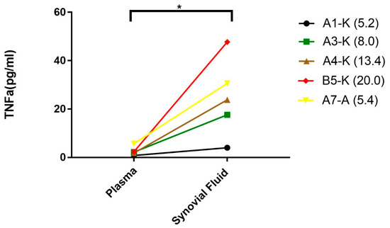 2.2.3. TNFα Measurement in Plasma and Synovial Fluid