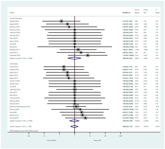 Ottóffy, M.; Mátrai, P.; Farkas, N.; Hegyi, P.; Czopf, L.; Márta, K.; Garami, A.; Balaskó, M.; Pótóné-Oláh, E.; Mikó, A.; et al. Uninterrupted or Minimally Interrupted Direct Oral Anticoagulant Therapy is a Safe Alternative to Vitamin K Antagonists in Patients Undergoing Catheter Ablation for Atrial Fibrillation: An Updated Meta-Analysis. J. Clin. Med. 2020, 9, 3073. https://doi.org/10.3390/jcm9103073