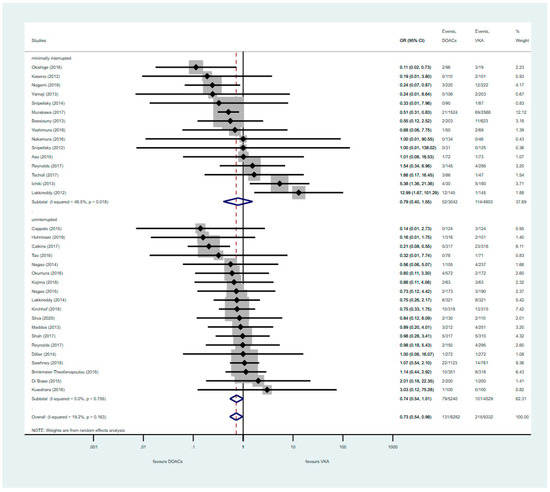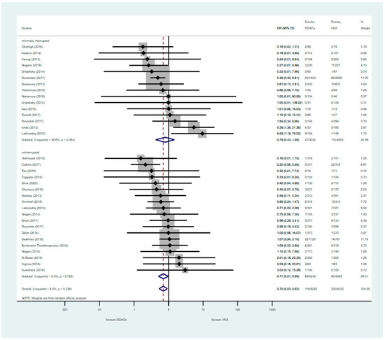 3.2. Pooled Analysis of Uninterrupted and Minimally Interrupted DOAC Studies
