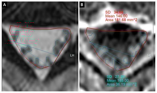 - Hamanishi, C.; Matukura, N.; Fujita, M.; Tomihara, M.; Tanaka, S. Cross-sectional area of the stenotic lumbar dural tube measured from the transverse views of magnetic resonance imaging. J. Spinal Disord. 1994, 7, 388–393. [Google Scholar] [CrossRef]