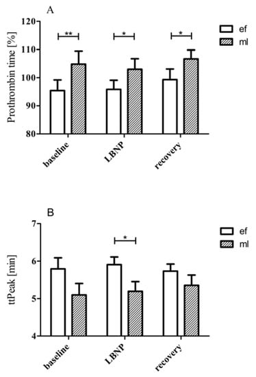 3.1. LBNP Effects on Standard Coagulation Parameters