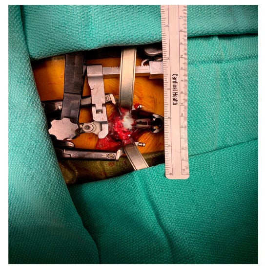 - Mogannam, A.; Bianchi, C.; Chiriano, J.; Patel, S.; Teruya, T.H.; Lum, S.S. Effects of Prior Abdominal Surgery, Obesity, and Lumbar Spine Level on Anterior Retroperitoneal xposure of the Lumbar Spine. Arch. Surg. 2012, 147, 1130–1134. [Google Scholar] [CrossRef] [PubMed][Green Version]