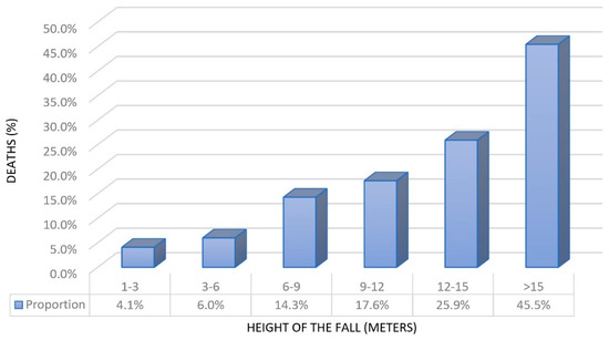 - Alizo, G.; Sciarretta, J.D.; Gibson, S.; Muertos, K.; Romano, A.; Davis, J.; Pepe, A. Fall from heights: Does height really matter? Eur. J. Trauma Emerg. Surg. 2018, 44, 411–416. [Google Scholar] [CrossRef] [PubMed]
