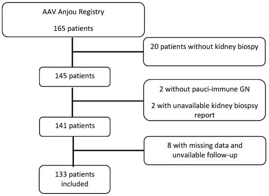 The AAV Maine-Anjou registry includes all patients diagnosed with ANCA-GN from the Maine Anjou Region in France, encompassing one university and three regional hospitals []. The registry gathers very detailed clinical and biological data of patients with ANCA-GN since 2000, as well as treatment management and outcomes.