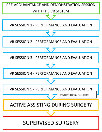 The group of 10 participants managed to complete the course of five VR sessions, and all were allowed to take part in active assisting during a surgery, and further, in a supervised surgery.