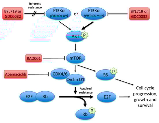 The experimental drugs used in this study are the PI3K inhibitors, BYL719 (alpelisib) and GDC0032 (taselisib); the mTOR inhibitor, RAD001 (everolimus); and the CDK 4/6 inhibitor, abemaciclib (LY2835219).