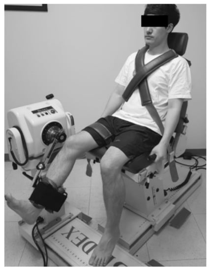 A sufficient muscle reaction time is important in protecting joints against sports injuries that require rapid coordination of muscle reaction [22]. The mechanism of muscle reaction is related to the arthrokinetic reflex, which is affected by velocity and acceleration [23,24]. Previous studies used methodologies such as trapdoor experiments and electromyography, but isokinetic analysis is a more dynamic assessment method and simulates a behavior that is closer to the sport activity [25]. Therefore, in this study, muscle reaction time was measured based on the AT in the isokinetic strength test. The muscle reaction time (msec) was specifically measured for a pre-set angular velocity (180°/s for knee joint and 120°/s for ankle joint in our study) during maximal muscle contraction [3,24,26,27]. Higher values for AT suggested delayed muscle reaction. AT was calculated automatically using the Biodex advantage software.
