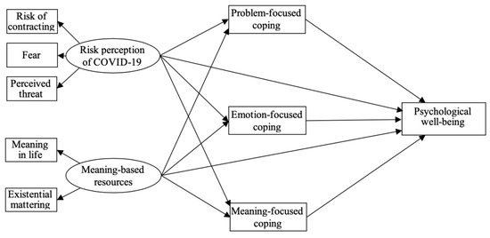 These results taken together imply that individuals may use coping in relation to their appraisals of stressful events and personal resources, which will subsequently influence well-being measures [37,38]. There can be also differential predictions for the different strategies as risk perception and personal resources are differently related to the coping strategies. However thus far, no studies have examined the mediating role of coping between risk perception and psychological well-being as well as between meaning-based resources and psychological well-being in the context of the COVID-19 pandemic. A German sample showed that the risk perception of being infected by COVID-19 was higher in women than men and higher in older people than younger people, in conjunction with a more frequent use of problem-focused strategies. The relationship between COVID-19 risk perception and coping strategies was not analyzed [39].