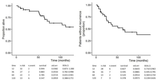 | Disease free interval (months), median (range) | 84 (7–291) |