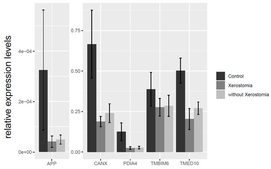 From the RT-qPCR, we found that expression of CANX, PDIA4, and TMED10 genes in SS (sicca) was significantly decreased in comparison to HS. No significant correlations were observed in CANX, APP, PDIA4, TMED10 and TMBIM6 gene expression between SS (sicca) and SS (non-sicca) group (Figure 3).