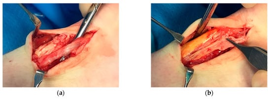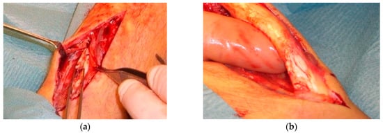 An additional treatment strategy might be a bone–quadriceps tendon graft for insertional ruptures, which has been evaluated in a retrospective study on 24 patients with a high rate of satisfaction on the AOFAS-Score. There were few side effects—one wound healing problem and one instance of deep venous thrombosis [37]. Further treatment strategies might include augmentation with the plantaris tendon, flaps, or a flexor hallucis longus transfer [5,9].