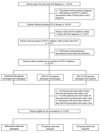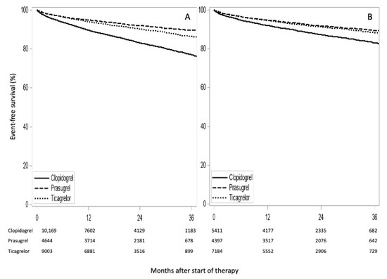 Chicago/Turabian StyleSheikh Rezaei, Safoura, Andreas Gleiss, Berthold Reichardt, and Michael Wolzt. 2020. "Use of Clopidogrel, Prasugrel, or Ticagrelor and Patient Outcome after Acute Coronary Syndrome in Austria from 2015 to 2017" Journal of Clinical Medicine 9, no. 11: 3398. https://doi.org/10.3390/jcm9113398