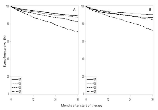 3.1. Drug Survival of P2Y12 Inhibitor Therapy