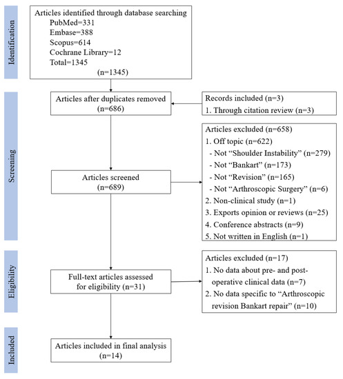 APA StyleYon, C.-J., Cho, C.-H., & Kim, D.-H. (2020). Revision Arthroscopic Bankart Repair: A Systematic Review of Clinical Outcomes. Journal of Clinical Medicine, 9(11), 3418. https://doi.org/10.3390/jcm9113418
