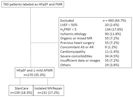 - Kajimoto, K.; Minami, Y.; Otsubo, S.; Sato, N.; Investigators of the Acute Decompensated Heart Failure Syndromes (ATTEND) registry. Ischemic or Nonischemic Functional Mitral Regurgitation and Outcomes in Patients with Acute Decompensated Heart Failure with Preserved or Reduced Ejection Fraction. Am. J. Cardiol. 2017, 120, 809–816. [Google Scholar] [CrossRef] [PubMed]