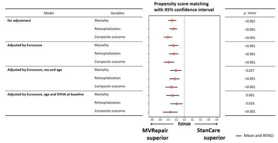 - Penicka, M.; Kotrc, M.; Ondrus, T.; Mo, Y.; Casselman, F.P.; Vanderheyden, M.; Van Camp, G.; Van Praet, F.; Bartunek, J. Minimally invasive mitral valve annuloplasty confers a long-term survival benefit compared with state-of-the-art treatment in heart failure with functional mitral regurgitation. Int. J. Cardiol. 2017, 244, 235–241. [Google Scholar] [CrossRef]
