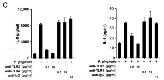 3.4. Involvement of TLR2 in P. gingivalis-Induced Proinflammatory Cytokine Production