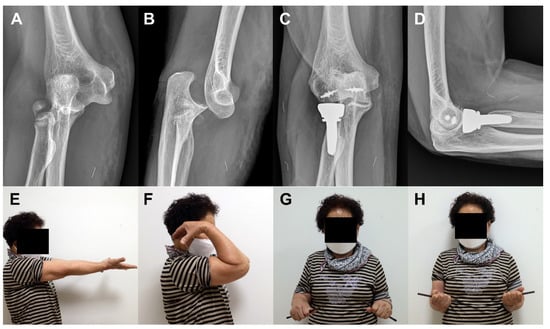 - Álvarez Muñoz, M.; Pardo García, J.M.; García Lamas, L.; Porras Moreno, M.; Jiménez Díaz, V.; Cecilia López, D. Protocolised surgical treatment of terrible triad of elbow. Results and complications. Rev. Esp. Cir. Ortop. Traumatol. 2019, 63, 281–288. [Google Scholar] [CrossRef]