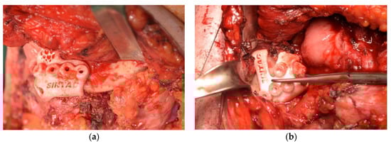 The virtual planning files were verified using MAGICS software (Materialise). STL files were then used for plate manufacture (Sintac srl, Trento, Italy) via direct metal laser sintering (EOSINT M280 system; Electro-Optical Systems GmbH, Krailling, Germany), layer by layer []. Similarly, the STL files of the cutting and drilling guides were printed using the SLS FORMIGA P110 system (Electro-Optical Systems GmbH).