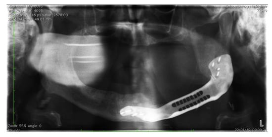 However, repairing a mandibular defect with a reconstructive plate can only lead to a series of diverse complications. The most frequent complications are rupture and oral exposure of the plate [,]. The latter complication is mostly due to the misplacement of the plate during the surgical reconstructive procedure. In both cases, the plate has to be removed, creating a challenging scenario for the surgeon. In fact, after the removal of a mandibular plate, a secondary approach and mandibular reconstruction are always difficult due to the lack of viable bone for the new fixation of the plate.