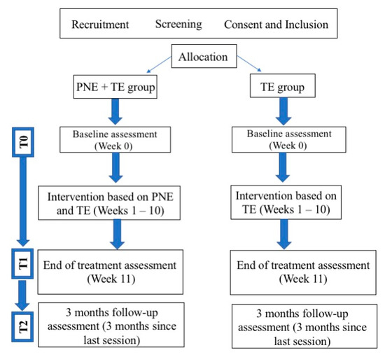 Participants who fulfilled the eligibility criteria were randomly assigned to PNE + TE group or to TE group. Concealed allocation (ration 1:1) was performed by an external examiner using the Research Randomizer (Version 4.0) computer software (www.random.org).