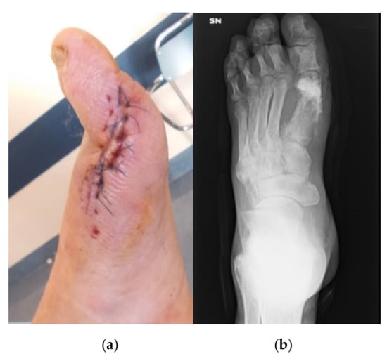 - Shaikh, N.; Vaughan, P.; Varty, K.; Coll, A.P.; Robinson, A.H.N. Outcome of limited forefoot amputation with primary closure in patients with diabetes. Bone Jt. J 2013, 95, 1083–1087. [Google Scholar] [CrossRef] [PubMed]