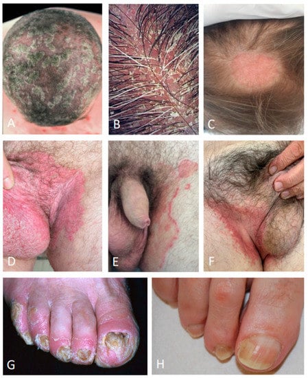 - Leung, A.K.C.; Lam, J.M.; Leong, K.F.; Hon, K.L. Tinea corporis: An updated review. Drugs Context 2020, 9, 1–12. [Google Scholar] [CrossRef] [PubMed]