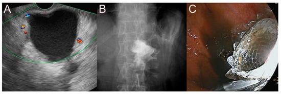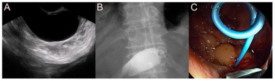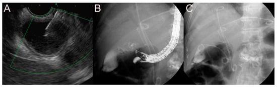 7. Choi, J.H.; Lee, S.S.; Choi, J.H.; Park, D.H.; Seo, D.W.; Lee, S.K.; Kim, M.H. Long-term outcomes after endoscopic ultrasonography-guided gallbladder drainage for acute cholecystitis. Endoscopy 2014, 46, 656–661. [Google Scholar] [CrossRef] [PubMed]