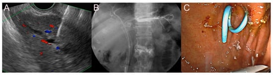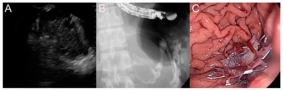 85. Kedia, P.; Kumta, N.A.; Widmer, J.; Sundararajan, S.; Cerefice, M.; Gaidhane, M.; Sharaiha, R.; Kahaleh, M. Endoscopic ultrasound-directed transgastric ERCP (EDGE) for Roux-en-Y anatomy: A novel technique. Endoscopy 2015, 47, 159–163. [Google Scholar] [CrossRef]