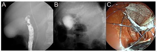 5. Song, T.J.; Lee, S.S.; Park, D.H.; Seo, D.W.; Lee, S.K.; Kim, M.H. Preliminary report on a new hybrid metal stent for EUS-guided biliary drainage (with videos). Gastrointest. Endosc. 2014, 80, 707–711. [Google Scholar] [CrossRef] [PubMed]