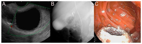 9. Jang, J.W.; Lee, S.S.; Park, D.H.; Seo, D.W.; Lee, S.K.; Kim, M.H. Feasibility and safety of EUS-guided transgastric/transduodenal gallbladder drainage with single-step placement of a modified covered self-expandable metal stent in patients unsuitable for cholecystectomy. Gastrointest. Endosc. 2011, 74, 176–181. [Google Scholar] [CrossRef] [PubMed]