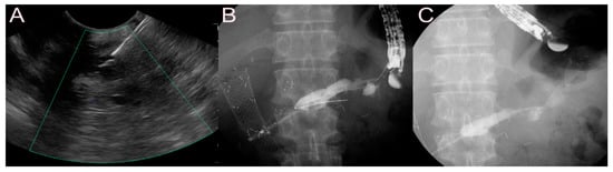 6. Paik, W.H.; Lee, T.H.; Park, D.H.; Choi, J.H.; Kim, S.O.; Jang, S.; Kim, D.U.; Shim, J.H.; Song, T.J.; Lee, S.S.; et al. EUS-Guided Biliary Drainage Versus ERCP for the Primary Palliation of Malignant Biliary Obstruction: A Multicenter Randomized Clinical Trial. Am. J. Gastroenterol. 2018, 113, 987–997. [Google Scholar] [CrossRef]