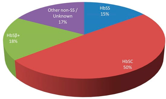 - Saraf, S.L.; Molokie, R.E.; Nouraie, M.; Sable, C.A.; Luchtman-Jones, L.; Ensing, G.J.; Campbell, A.D.; Rana, S.R.; Niu, X.M.; Machado, R.F.; et al. Differences in the clinical and genotypic presentation of sickle cell disease around the world. Paediatr. Respir. Rev. 2014, 15, 4–12. [Google Scholar] [CrossRef]