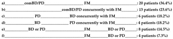 In 43 patients out of 55 (78.2%) comBD/PD preceded or developed concurrently with FM. The temporal sequencing of threshold BD and PD is shown in Figure 2.
