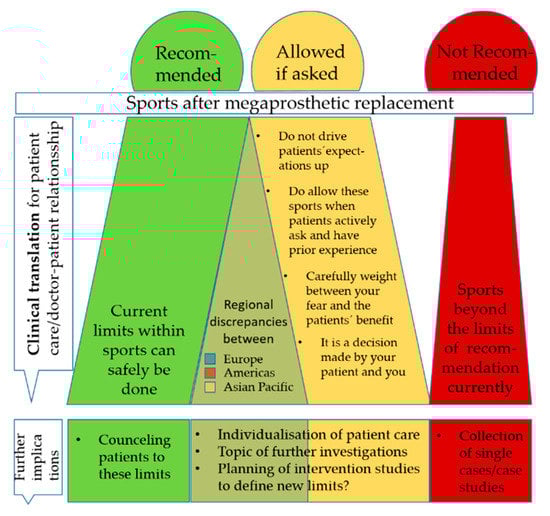 Graphical summary of sport recommendations after megaprosthetic replacement.