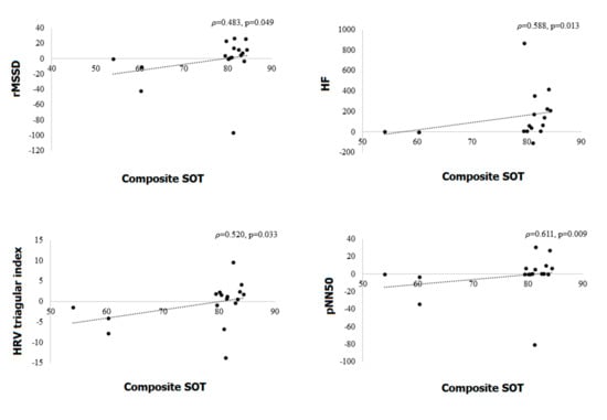3.5. Correlations between Equilibrium Scores for CDP in CDP and HRV Parameters
