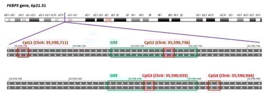 - Klengel, T.; Mehta, D.; Anacker, C.; Rex-Haffner, M.; Pruessner, J.C.; Pariante, C.M.; Pace, T.W.W.; Mercer, K.B.; Mayberg, H.S.; Bradley, B.; et al. Allele-specific FKBP5 DNA demethylation mediates gene-childhood trauma interactions. Nat. Neurosci. 2013, 16, 33–41. [Google Scholar] [CrossRef]