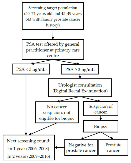 - Määttänen, L.; Auvinen, A.; Stenman, U.-H.; Tammela, T.; Rannikko, S.; Aro, J.; Juusela, H.; Hakama, M. Three-year results of the Finnish prostate cancer screening trial. J. Natl. Cancer Inst. 2001, 93, 552–553. [Google Scholar] [CrossRef][Green Version]